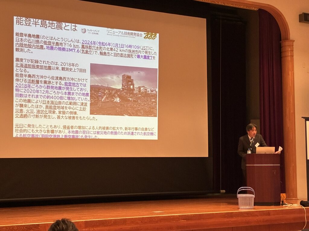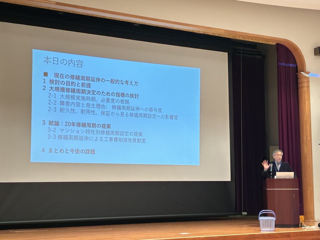 第一部の事業発表会では、塚部彰副会長が登壇。「大規模修繕工事20年周期延伸プロジェクト報告」では、周期延伸について具体的な取り組みが紹介された。続いて「石川県七尾市へのボランティア活動報告」では、被災地支援における協会の社会貢献活動が報告され、参加者から大きな関心を集めた。